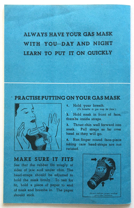 This pocket guide explains the procedures for how air raids were managed in Reading, including the use of gas masks.