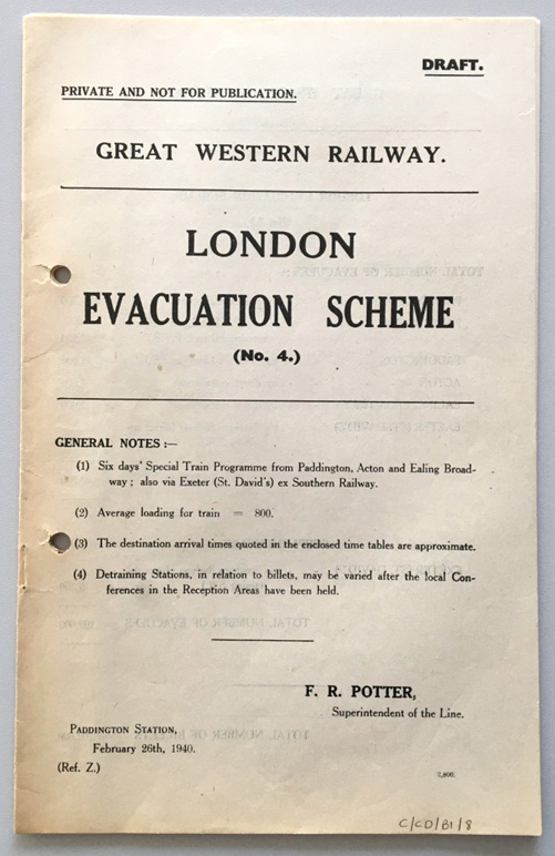Great Western Railway London Evacuation Scheme circular, 1940, C/CD/B1/8