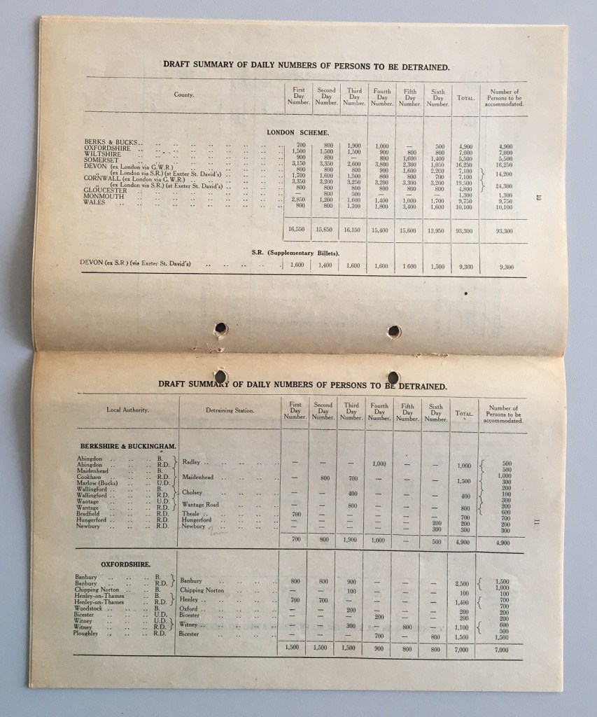 A second wave of evacuees from London arrived in 1940. A Great Western Railway programme, dated 26 February 1940, lists the number of evacuees expected to arrive in Berkshire by train from Paddington.