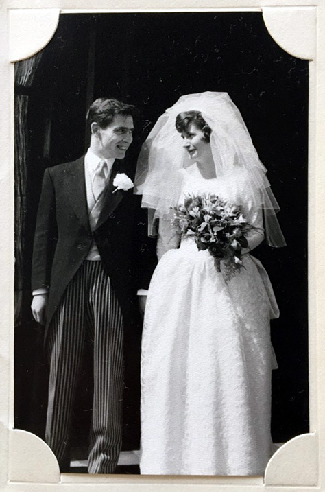 with his wife Judith on their wedding day, 1963, D/EX1362/3
